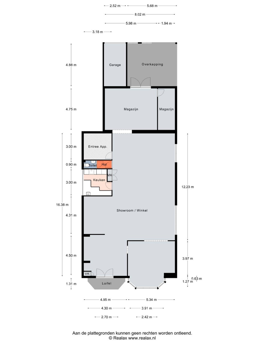 The surfaces have been measured by the current tenant. The specified size is therefore indicative; no rights can be derived from it nor can there be any subsequent settlement.